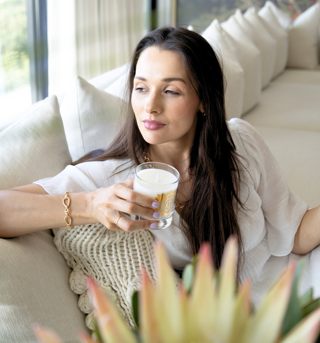 Our Signature candle: Luxurious centerpiece for dinner parties, self-care rituals, or everyday elegance. A generous gift you'll be tempted to keep.
